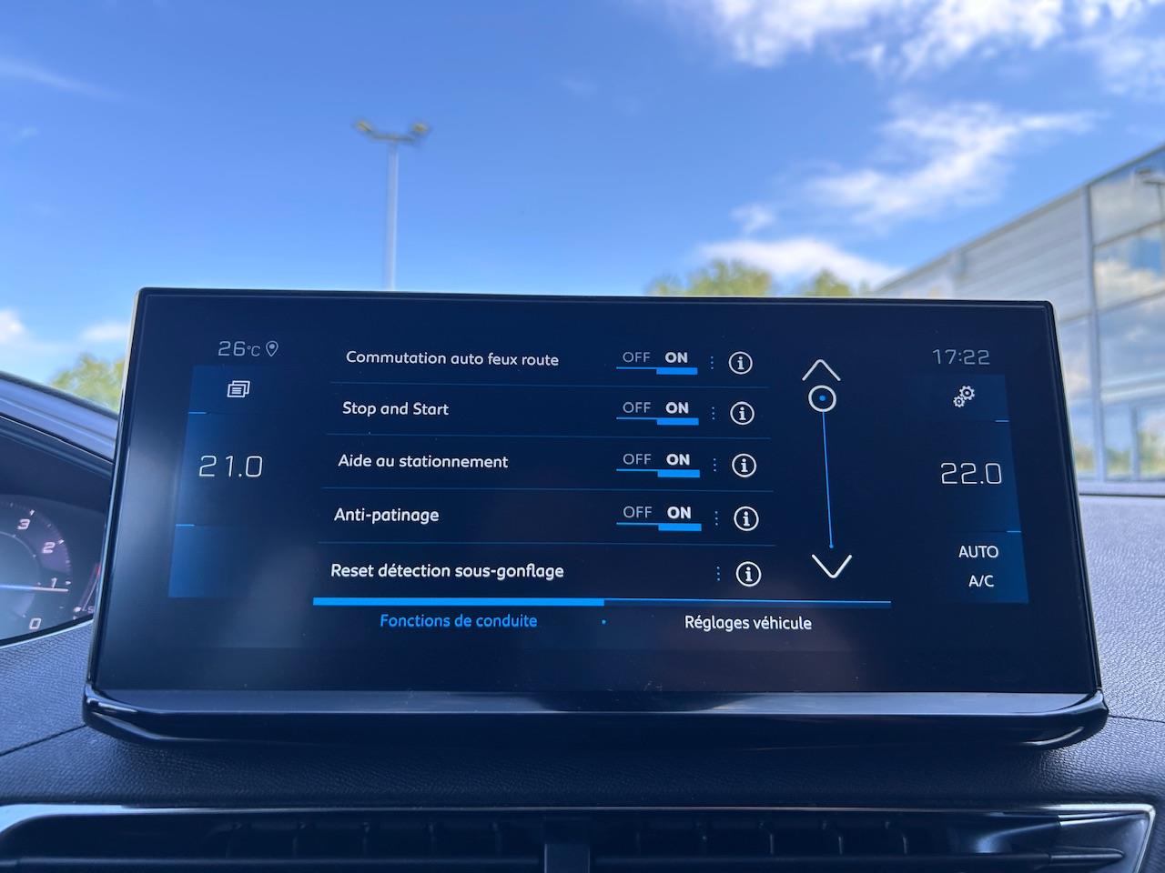 • accès et démarrage mains libres• accoudoir central av à ouverture papillon, avec compartiment de rangement éclairé et réfrigérable• air conditionné automatique bi-zone avec aérateurs aux places ar• allumage automatique des feux avec commutation auto"• avertisseur de franchissement de ligne• banquette ar rabattable 1/3 - 2/3 avec accoudoir central, trappe a skis• détection de sous-gonflage indirecte• eco mode• essuie-vitre av avec systeme de lavage ""magic wash""• fixations isofix (passager av et aux places latérales ar)• fonction ""mirror screen"" (apple carplay / android auto )• frein de stationnement électrique avec aide au démarrage en pente et serrage automatique• jantes alliage 18"" diamantees detroit bi-ton gris storm brillant• kit de depannage de pneumatique• lève-vitres av et ar électriques séquentiels avec antipincement• navigation 3d connectee avec ecran tactile capacitif 10"" hd• projecteurs ""peugeot led technology"" avec feux diurnes a led sous projecteurs• régulateur / limiteur de vitesse• retroviseur interieur photosensible• retroviseurs exterieurs degivrants avec reglage et rabattement electriques• siège conducteur avec réglage lombaire• sièges av réglables en hauteur• visio park 1: caméra de recul + radar ar• vitres laterales ar et lunette ar chauffante surteintees
