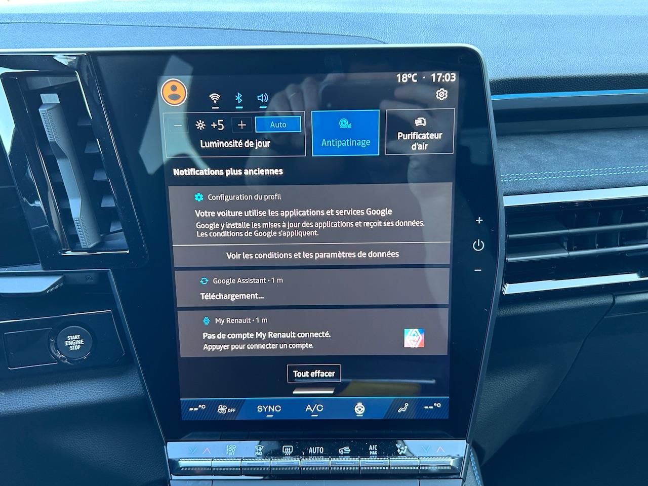 • aide au freinage d''urgence• aide au parking av/ar et lateral• alerte de distance de sécurité• alerte detection de fatigue• alerte franchissement de ligne et assistant maintien dans la voie• appel d''urgence• banquette ar 1/3 2/3• barres de toit longitudinales• caméra de recul• carte renault acces et demarrage mains libres• chargeur smartphone a induction• climatisation automatique bi-zone• commutation automatique des feux de route/croisement• detection intelligente des limitations de vitesse et prevention survitesse• faux plancher de coffre• feux ar a led avec effet 3d• feux av full led adaptative vision• feux de jour à led• frein de parking electrique avec fonction auto-hold• hayon motorise• jantes alliage 20" daytona diamantees noir• kit de gonflage• leve-vitres ar electriques a impulsion• leve-vitres av electriques a impulsion• Multi-sense• my safety switch• navigation google maps• pack safety : assistance au maintien de voie d''urgence avec avertissement et correction de direction en fonction de la circulation venant de l''arrière ou en sens inverse et de la sortie potentielle dans le paysage. comprend l''assistance aux angles morts +• peinture bi-ton nacré• régulateur de vitesse adaptatif• rétroviseur intérieur électrochrome sans cadre• retroviseurs exterieurs electriques, degivrants, rabattables automatiquement• siège conducteur et passager avec réglage en hauteur• sieges avec systeme isofix• systeme de surveillance de la pression des pneus• systeme multimedia openr link 12" : navigation, services google, audio arkamys auditorium• vitres ar surteintees• volant chauffant• volant réglable en hauteur et profondeur